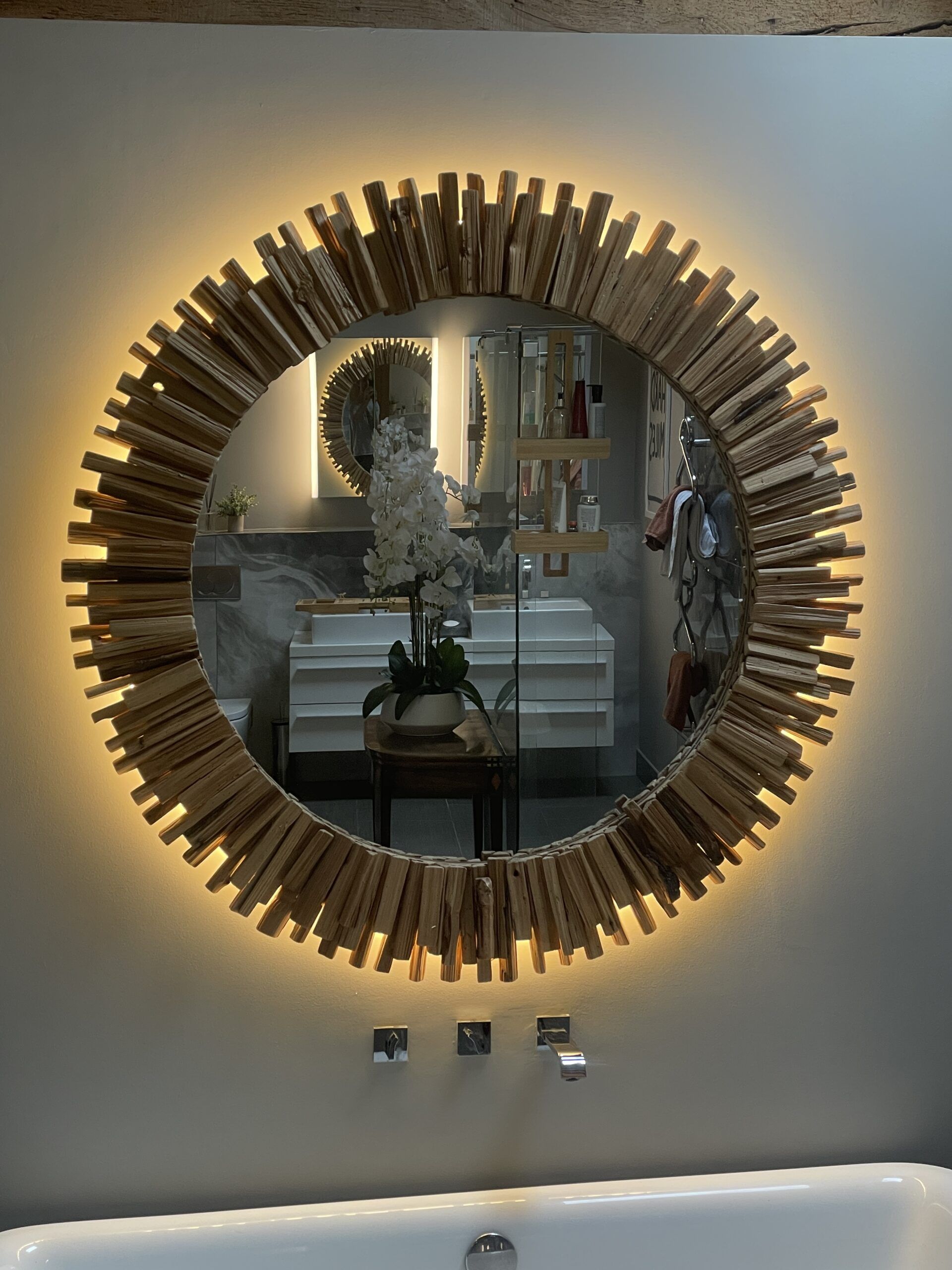 The tired looking bathroom wall sconse's were removed and instead soft lighting achieved with a COB led strip fitted behind their stunning mirror.