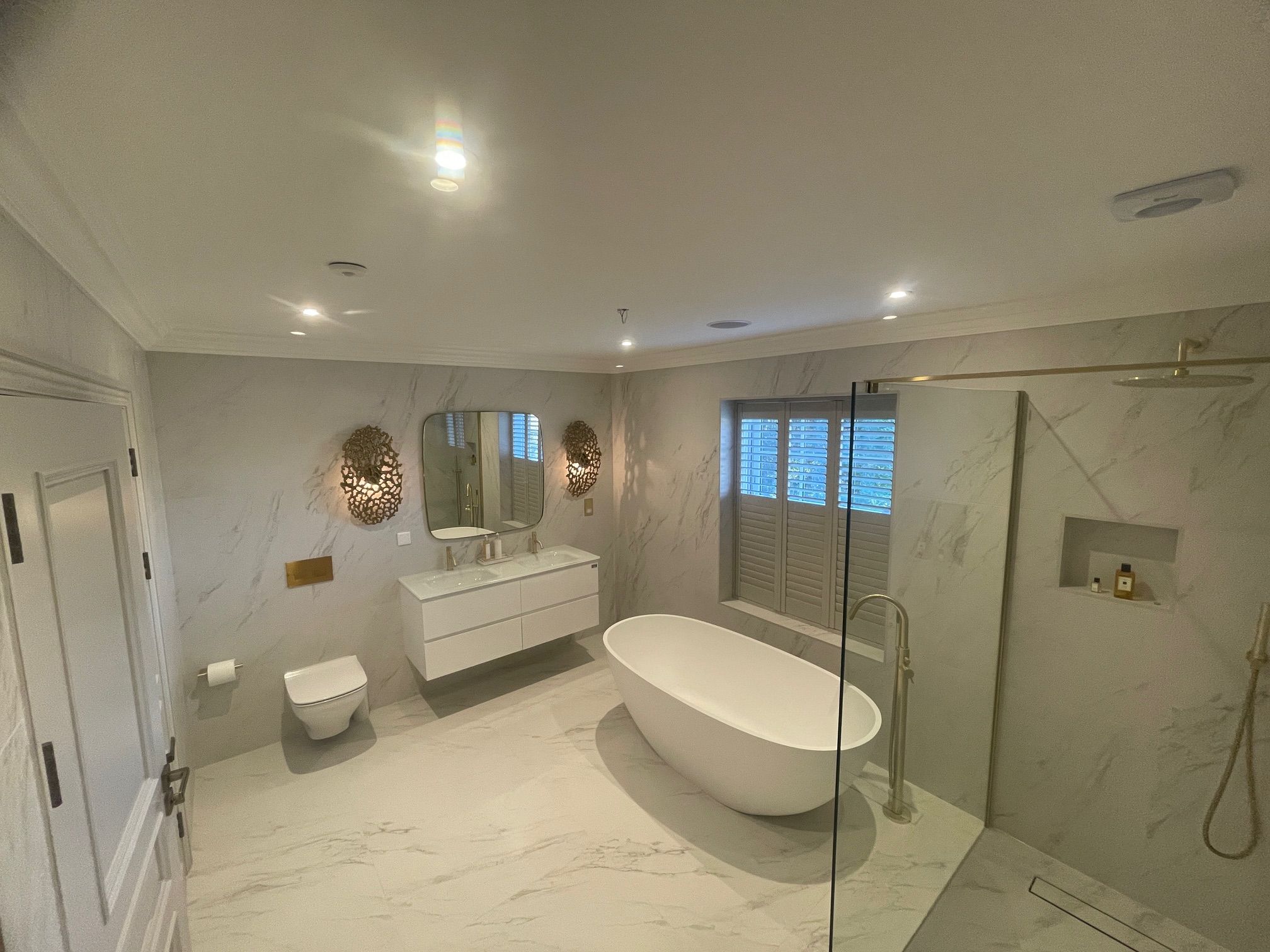 The tired looking bathroom wall sconse's were removed and instead soft lighting achieved with a COB led strip fitted behind their stunning mirror.